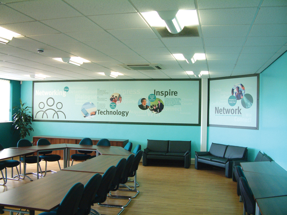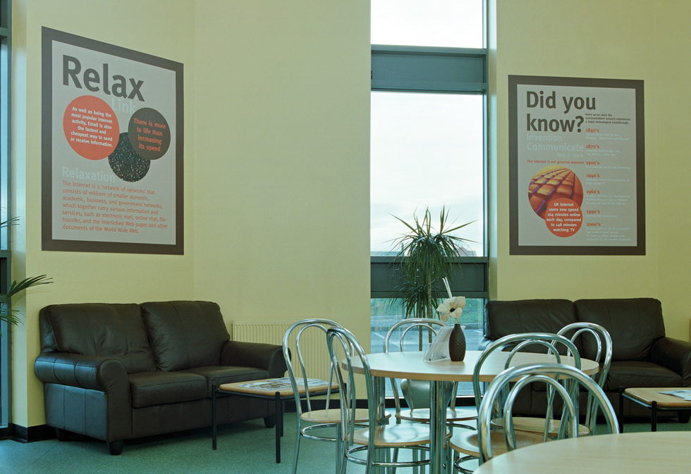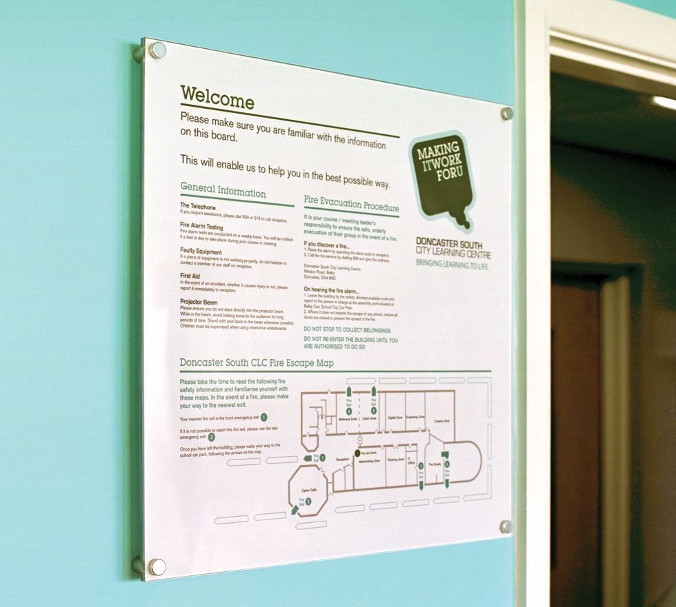 Last year we completed the design and installation of new wall graphics at the Doncaster South City Learning Centre. These large scale designs feature the identity’s we created for each of the different ‘zones’ in the learning centre, featuring relevant information and inspirational quotes as well as aspirational imagery. These boards have proved very successful, receiving very positive comments from visitors to the centre.