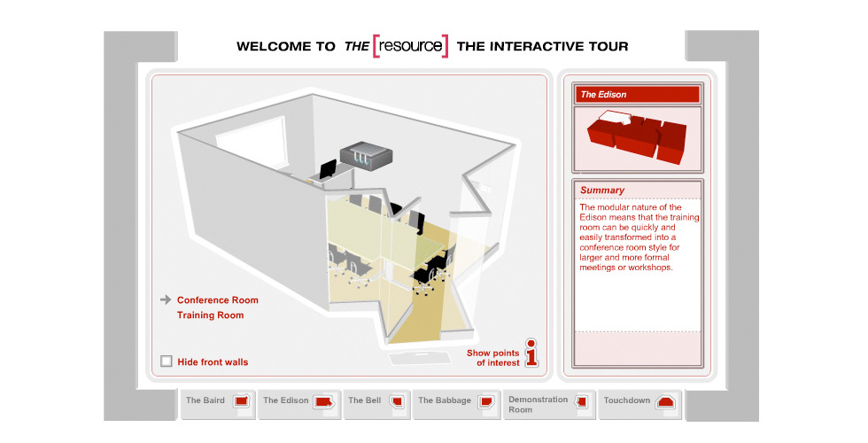 Web site and promotional material for a computer marketing organisation's new business resource centre. The work included icon design, branding and colour coding for each aspect of the service. The interactive games for Avnet's site take inspiration from a simple child's game interpreted through flash software. The e-mail campaign and desktops follow our style guides for the entire campaign. Visitors to the site can actually explore the business resource centre from their computer. This was possible by clicking on rooms of the building to view realistic 3d models of each room along with facts and photos. Having had the chance to explore the buildings rooms & services, viewers feel more at home before they've stepped inside.